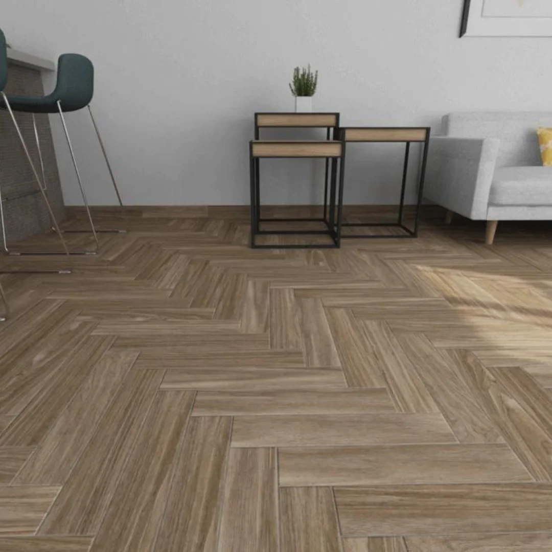 Measuring 49×10 cm, these timber-effect tiles feature a more compact format than standard planks, ideal for adding charm and proportion to smaller or narrower rooms. Available in two refined shades — Walnut and Grey — Canterbury complements both contemporary and classic interiors with effortless style.