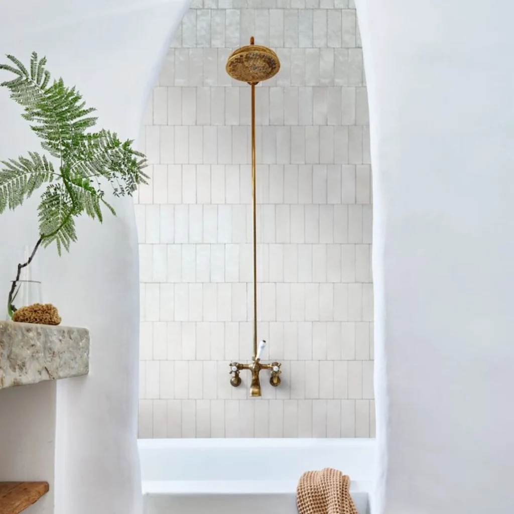 The Chan Bianco collection blends artisanal craftsmanship with modern sophistication, offering a versatile solution for elegant, light-filled interiors. Each 7.5×20 cm porcelain tile features straight edges for seamless installation, while the glossy finish and subtly irregular surface evoke the charm of handmade ceramics.