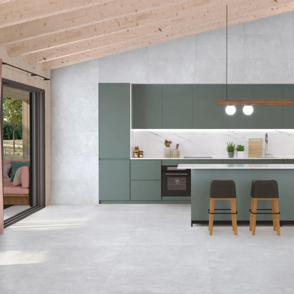 Available in a generous 90×90 cm format with a soft matt finish, the collection offers two versatile colours: Bone, a gentle, warm tone that creates a soothing backdrop, and Silver, a sleek, cool shade that adds understated elegance. Perfect for both walls and floors, Ground brings refined durability and style to any environment.