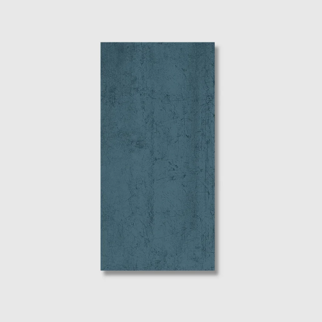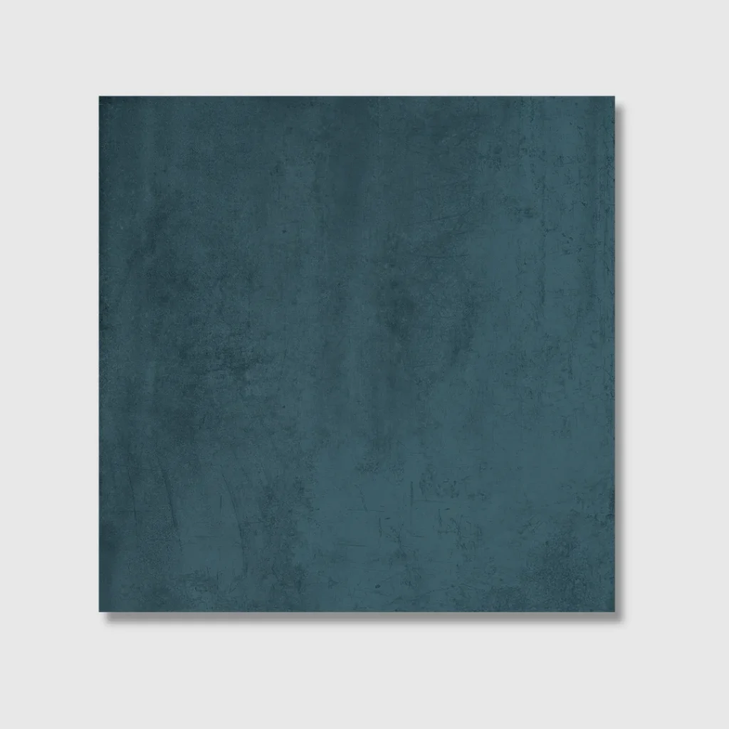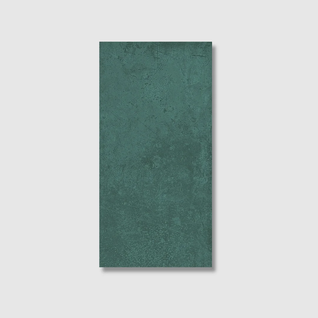 Available in four striking colours — Green, Grey, Blue, and Gold — the collection celebrates the contrast between light and depth. Each aged metal effect porcelain tile reveals the delicate balance between the gleam of metal and the soft marks left by oxidation, creating a look that feels both tactile and elegant.