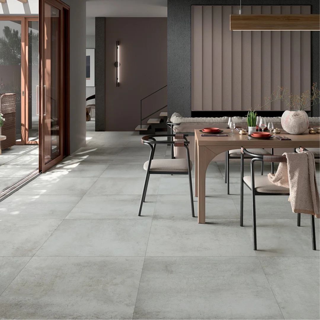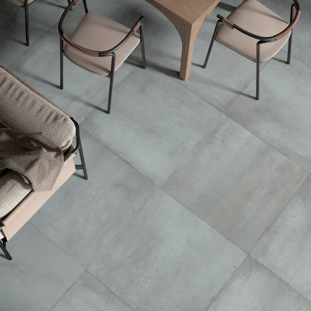 Every surface reflects the charm of natural imperfection. The matt finish softens metallic reflections, while the porcelain material ensures durability and versatility. Offered in 60×60 cm and 30×60 cm formats, Lille suits floors and walls in homes and commercial spaces alike.