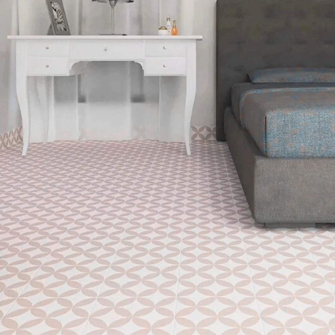 Available in Pink, Green, and Black, each tile combines classic symmetry with a fresh, artistic look. These colourful geometric floor tiles suit both walls and floors, adding character and charm to bathrooms, kitchens, or hallways.
