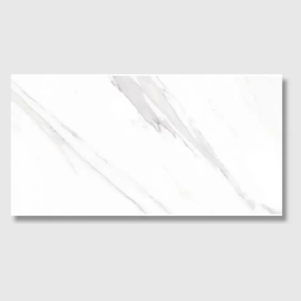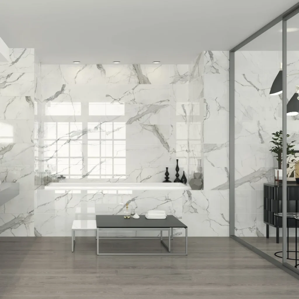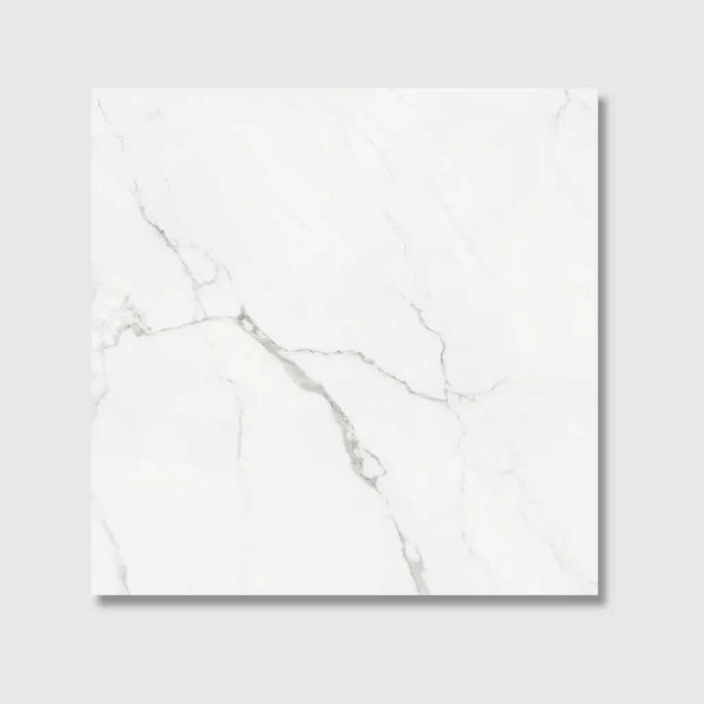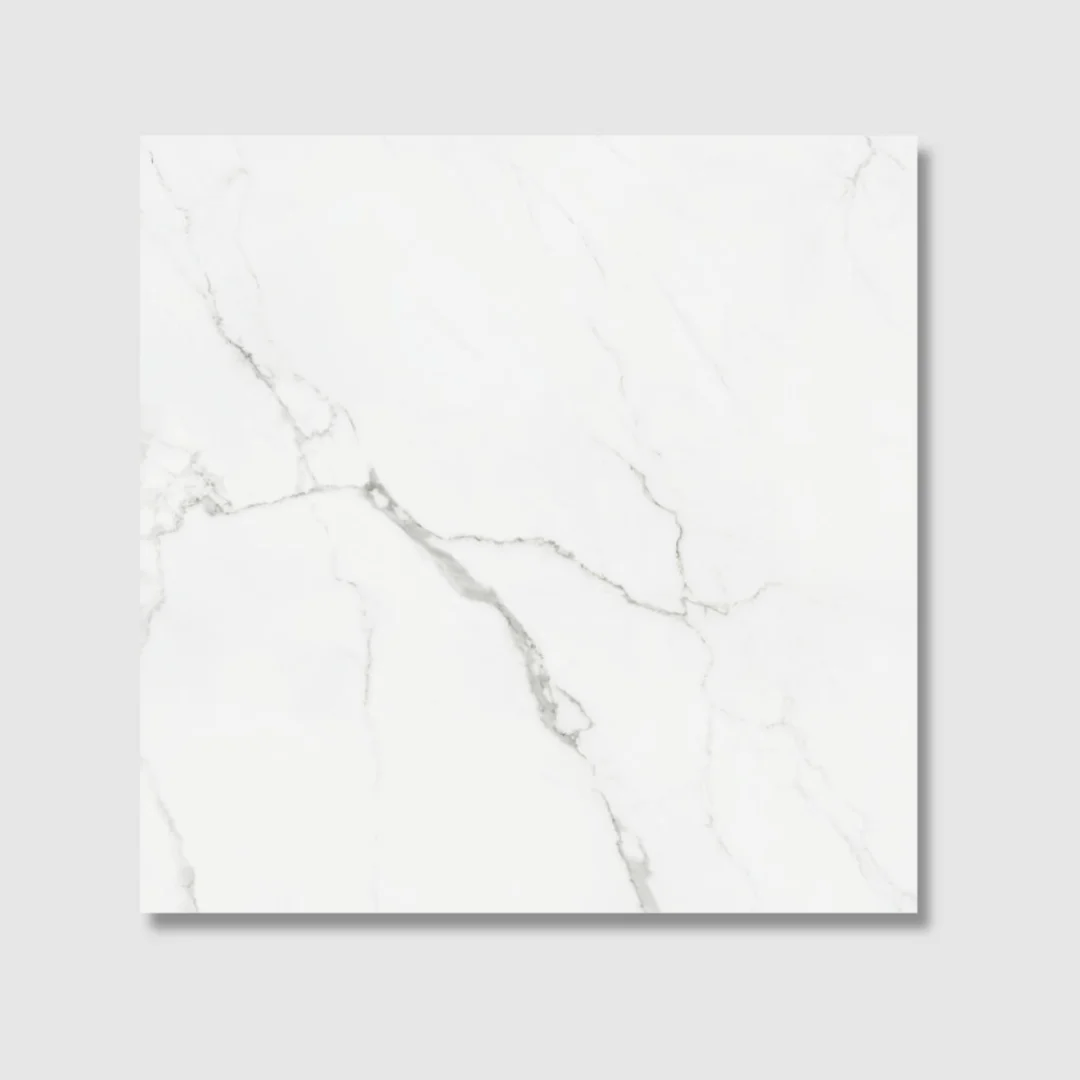 You can choose between matt and gloss finishes to suit different interior styles. Each tile features a clean white base with bold grey veining, recreating the elegance of marble without the upkeep.