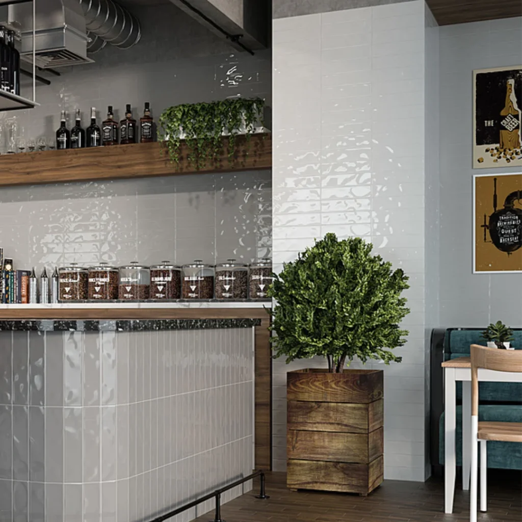 The Oregon collection offers a bold and modern take on the classic glossy metro tile. Its wavy surface and high-gloss finish reflect light beautifully, bringing depth and energy to any wall.