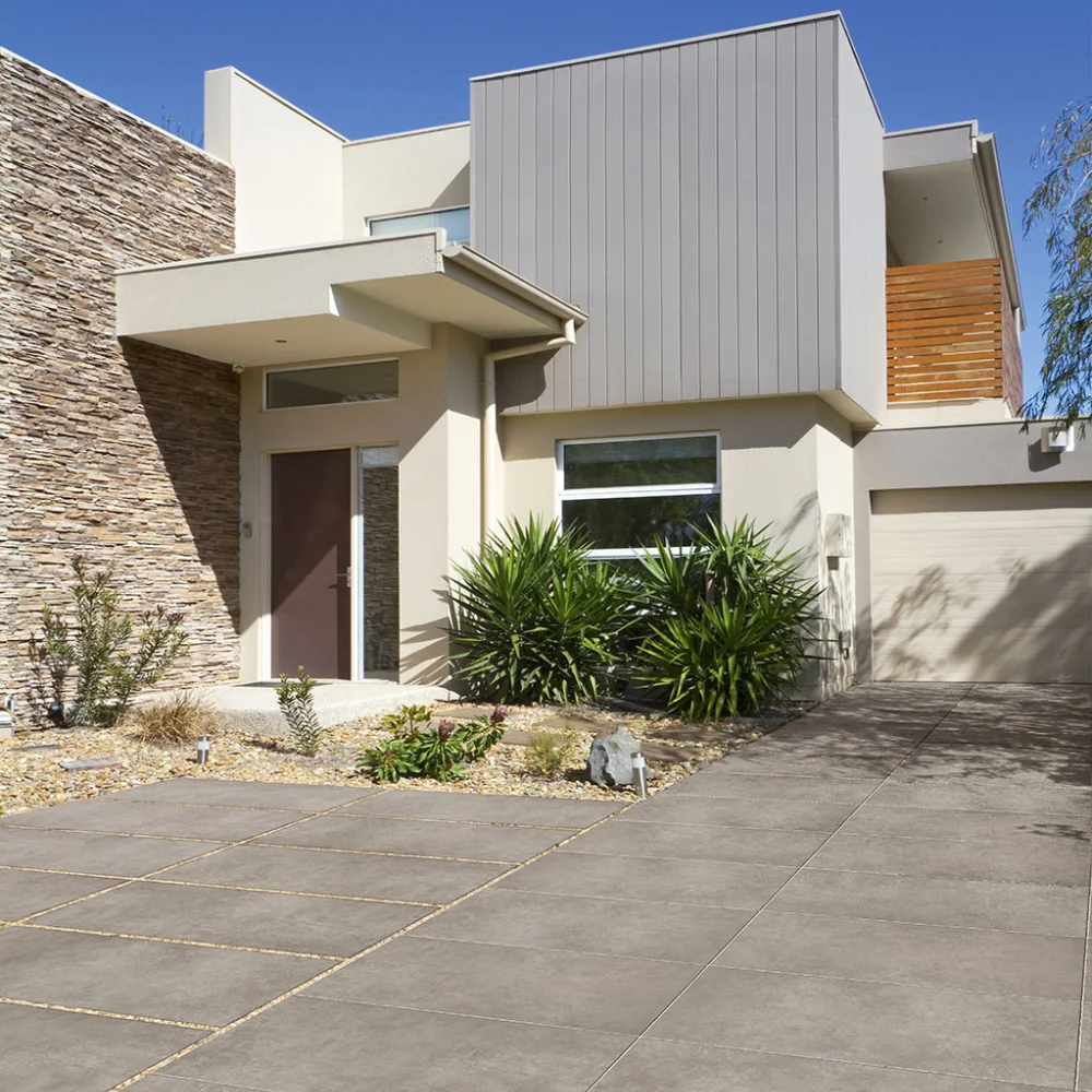 Designed for both indoor and outdoor use, the collection includes a wide range of colours and sizes to suit every design concept. The palette features five refined shades — Dark, Mid, Light, Sand (beige), and White — all available in 90×90 cm. Outdoor options include Dark and Mid in 90x90x2 cm and 90x45x2 cm, while Sand is offered in 90x45x2 cm.