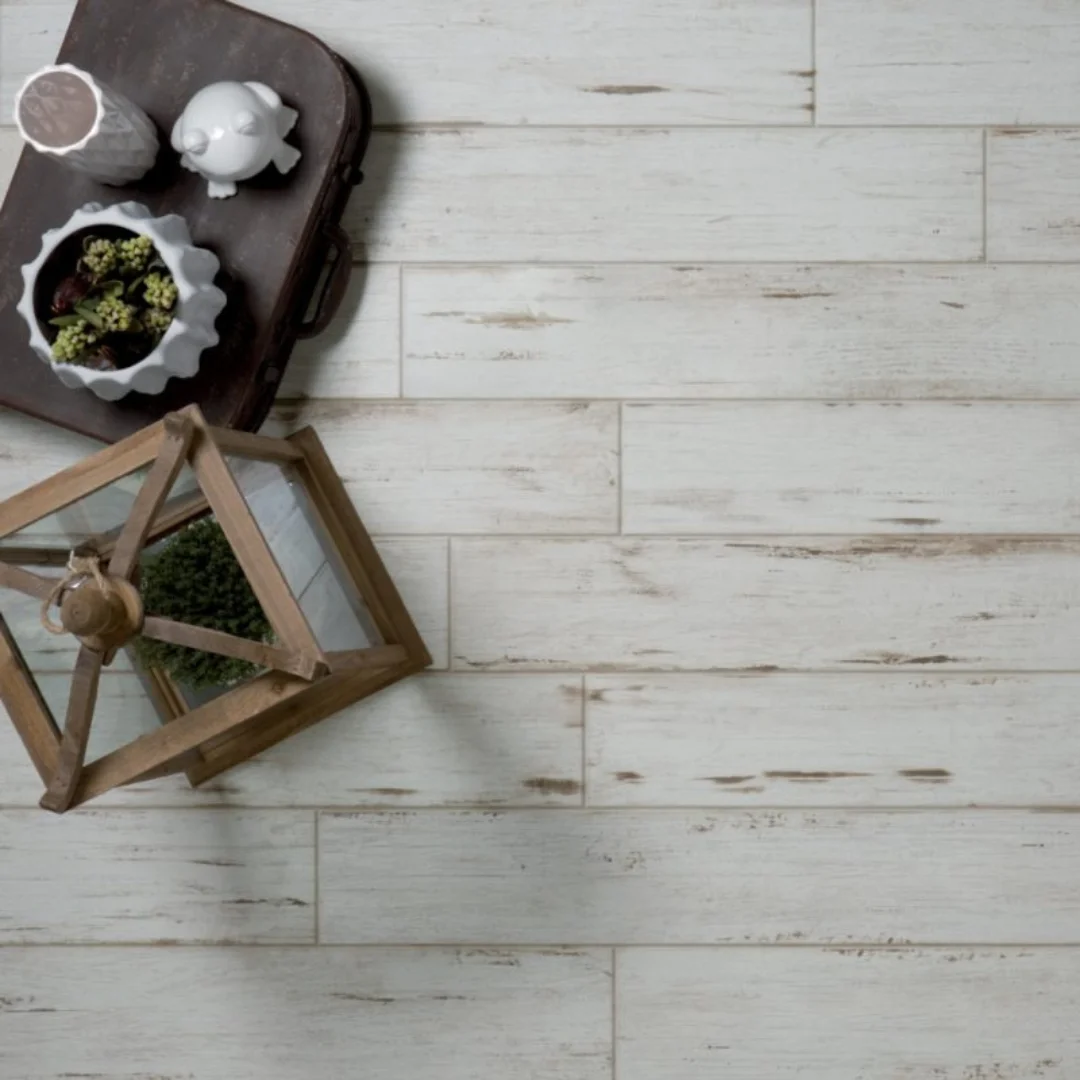 The Vintage collection brings the charm of aged wood into contemporary interiors. Made from high-quality porcelain, these wood effect tiles recreate the warmth and texture of reclaimed timber with subtle marks and tonal variations that evoke natural ageing.